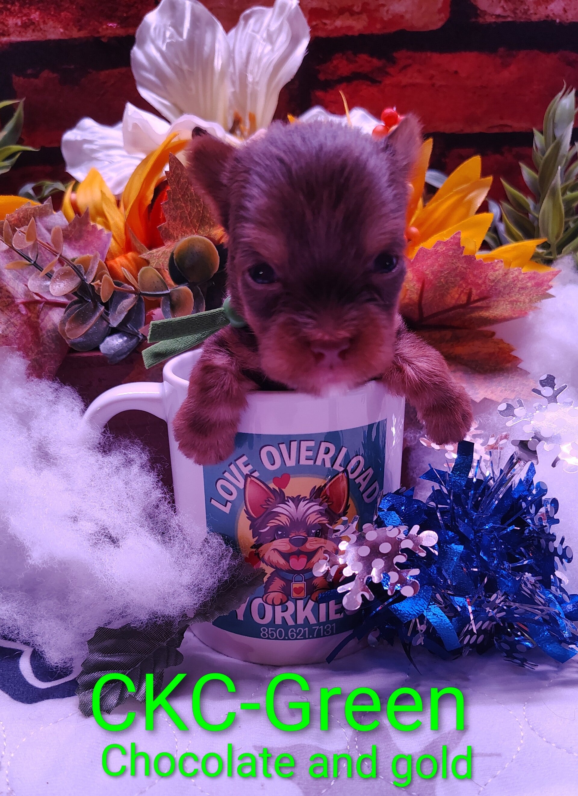 Hello there! my color is green! I'm a sweet little CKC registered 10 week old baby boy that is looking for my furever family! I'll come with all my papers plus a goody bag that includes food, toys and more! Contact my current family and make me yours today! I'm chocolate and gold! Don't miss out! 💚